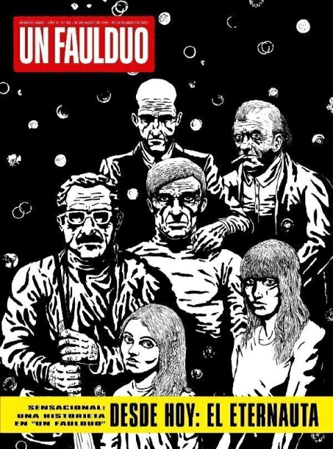 Interviniendo directamente sobre la edición facsimilar del número 201 de la revista Gente, Un Faulduo ha realizado un trabajo de compresión: la totalidad de El Eternauta se encuentra en este ejemplar. En cada nota, publicidad, dossier emerge, fragmentaria, la invasión. Pero, claro, la tarea de abordar este libro no es sencilla. El lector descubrirá que el relato comienza por la mitad, hasta llegar a las únicas tres páginas no intervenidas de la publicación original, que son el comienzo de la aventura, tal como Breccia y Oesterheld las diseñaron y tal como Gente las publicó. Ahí la historia comienza, pero nunca termina. Como la del propio Eternauta, que aún vaga por las nieves del tiempo, entre 1957, 1969 y la actualidad.