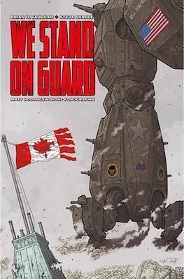 "Brian K. Vaughan, escritor del bestseller #1 del New York Times, Saga, y Steve Skroce, legendario artista de storyboards de Hollywood, unen fuerzas con el aclamado colorista Matt Hollingsworth y el famoso diseñador Fonografiks para esta emocionante y subversiva historia de acción militar. Ubicada cien años en el futuro, We Stand on Guard sigue a un heroico grupo de civiles canadienses convertidos en guerrilleros, quienes defienden su hogar ante la invasión de un oponente tecnológicamente superior... Estados Unidos de América. Esta edición de lujo en pasta dura presenta los seis números de la exitosa y controvertida miniserie, junto con espectaculares bocetos y arte nunca antes vistos."